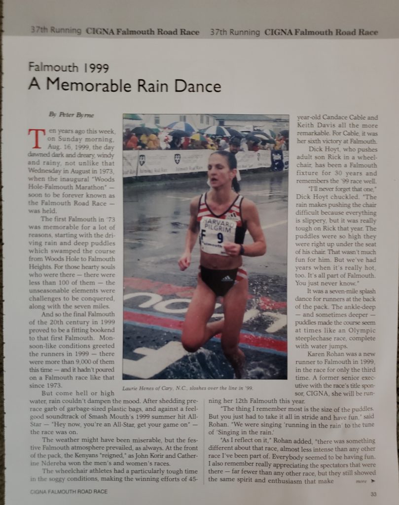 Many Falmouth residents and visitors have run the Road Race over the years. The Falmouth Road Race web site has a wonderful year-by-year recap of the 49 races to date. Does it spark memories in you?