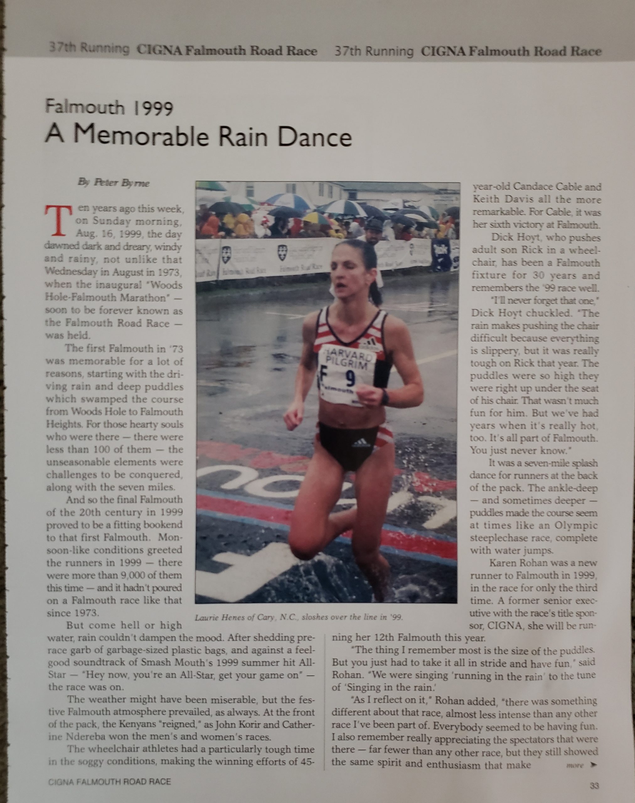 She also found a page in her scrapbook about that year! You can see how wet it was even at the finish.